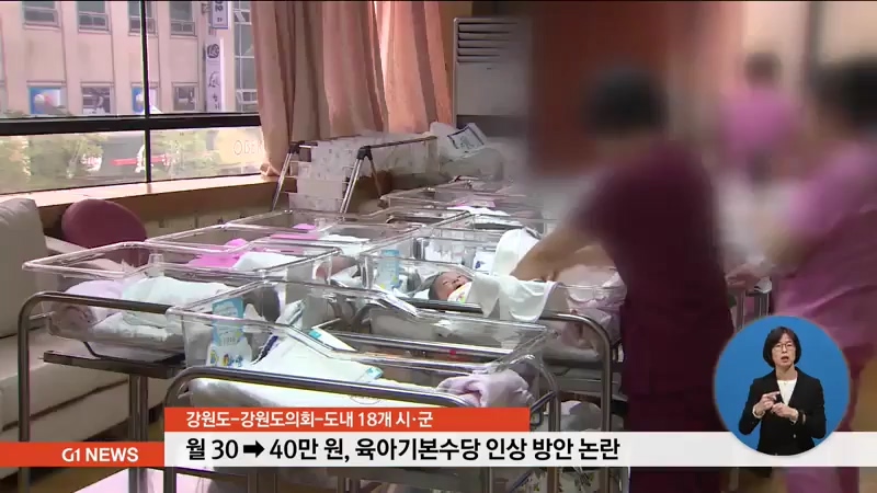 강원도의회도 수당 10만 원 인상으로 출산율을 저하를 막을 수 있을 것이냐는 의구심을 강하게 표출하고 있어, 육아기본수당 인상에 대한 논란은 계속될 것으로 보입니다.