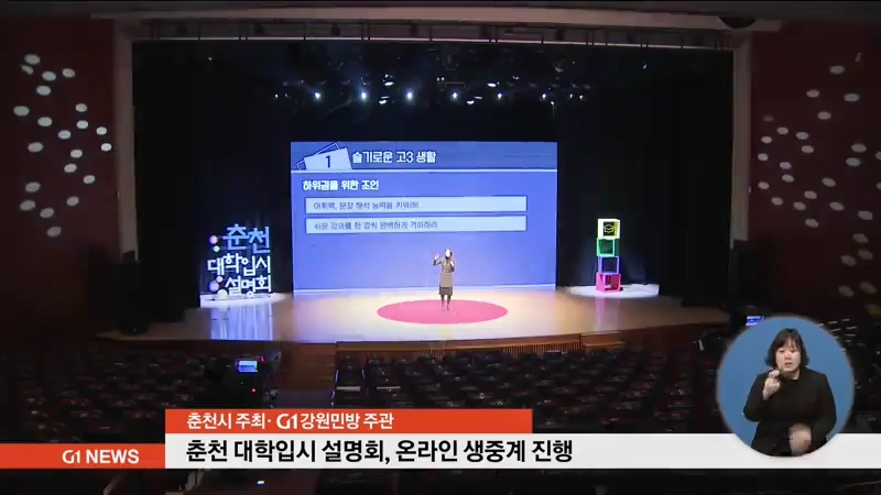 이번 춘천 입시설명회는 오는 28일 오전 11시부터 G1강원민방을 통해 방송될 예정입니다.