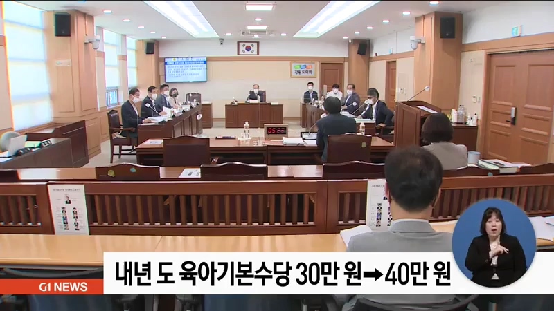 강원도가 내년부터 육아기본수당을 30만원에서 40만원으로 상향 지급하는 안이 도의회 상임위에서 논쟁 끝에 통과됐습니다.