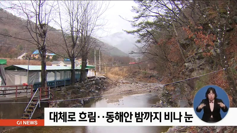 오늘 강원도는 대체로 흐린 가운데, 영동지역을 중심으로 밤까지 비나 눈이 내리는 곳이 있겠습니다.