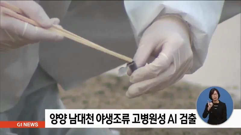 농림축산식품부와 환경부는 남대천에서 채취한 야생조류 분변 시료를 정밀 검사한 결과, H5N8형 고병원성 AI 확진 판정이 나왔다고 밝혔습니다.