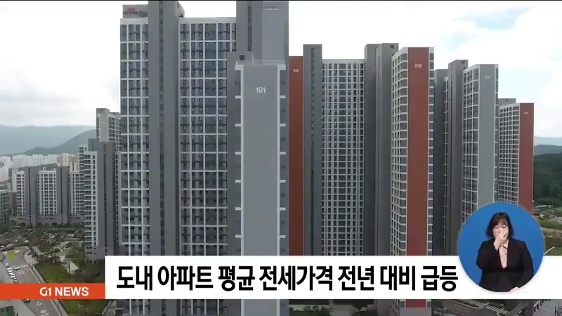 한국감정원에 따르면, 지난달 기준 도내 아파트 평균 전세가격은 1년 전보다 552만 원 오른 1억 1,807만원으로 올들어 가장 높았습니다.