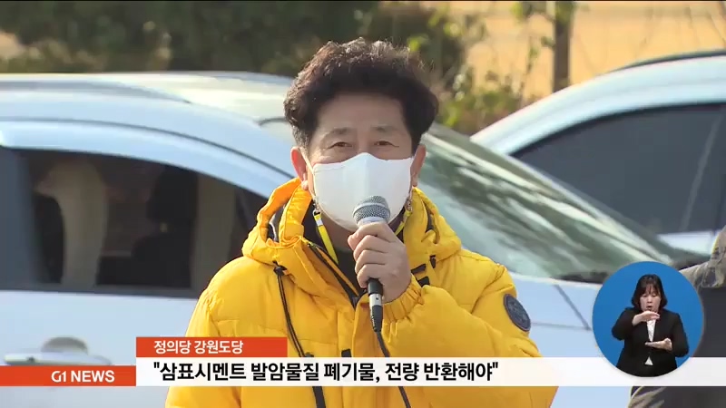 정의당 강원도당은 어제 삼표시멘트 앞에서 기자회견을 열고 경남 지역에서 반입된 폐기물에 라돈 등 발암 물질이 일부 포함돼 있어 전량 반환해야한다면서, 삼척시의 강력한 행정 조치를 촉구했습니다.