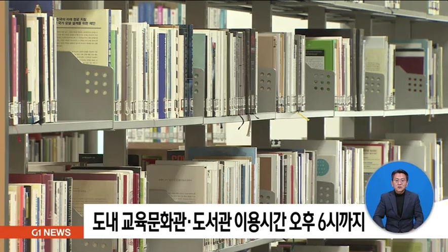 도내 교육문화관 5곳과 도서관 17곳의 이용시간이 변경됩니다.