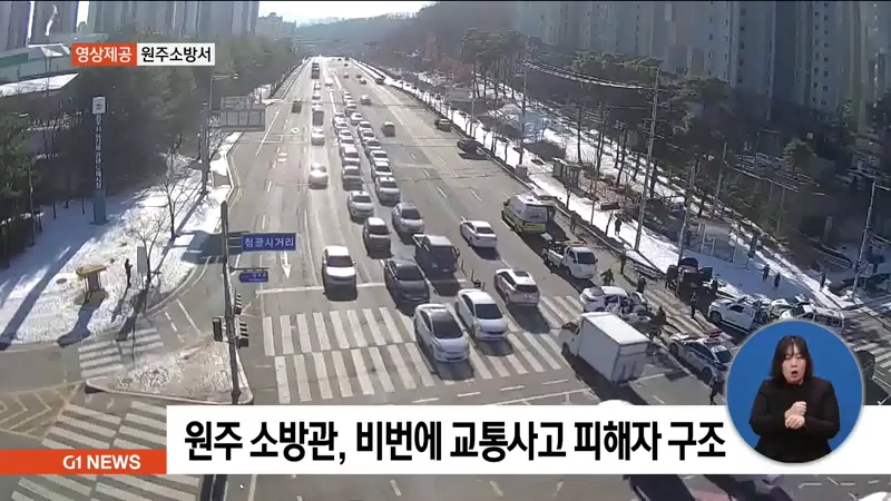 원주의 한 소방관이 쉬는 날 차량 사고를 목격하고 신속한 응급처치로 탑승자의 큰 부상을 막은 일이 뒤늦게 알려졌습니다.