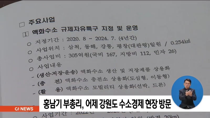 홍총리는 관련기업들과 간담회 자리에서 강원도 액화수소 사업이 우리나라 수소 산업을 육성하고, 수소경제를 구축하는데 큰 디딤돌이 되기를 기대한다면서 강원도가 '그린수소' 생산 최적 장소로 자리매김하도록 기술개발을 당부했습니다.