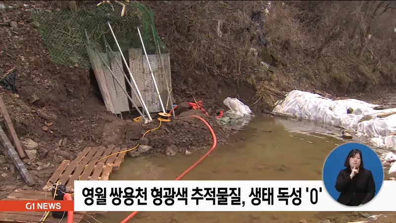 지난 15일 영월군 한반도면 후탄1리 쌍용천에 유입된 형광색 추적물질에 대한 강원도 보건환경연구원의 검사결과, 생태 독성 물질은 발견되지 않은 것으로 나왔습니다.