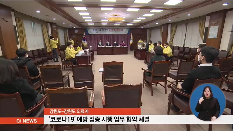 강원도와 강원도병원협회, 강원도의사회, 강원도간호사회는 도청에서 업무협약을 맺고, '코로나19' 예방 접종의 안전하고 신속한 시행을 위해 함께 노력하기로 했습니다.