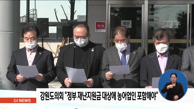 강원도의원들은 건의문을 내고, 정부가 추진하는 4차 재난지원금에서 소상공인은 지급대상에 포함되는데, 자연재해 속에서 속수무책인 농어업이 빠져서는 안된다고 주장했습니다.