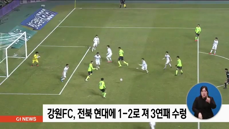강원 FC가 '디펜딩 챔피언' 전북 현대와의 원정 경기에서 역전패를 당하며 3연패 부진에 빠졌습니다.