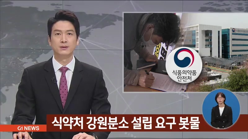 원주상공회의소와 시의회 등에서도 식약처 강원분소 설립 추진을 위한 성명서를 잇따라 낼 예정입니다. G1 뉴스 곽동화입니다.