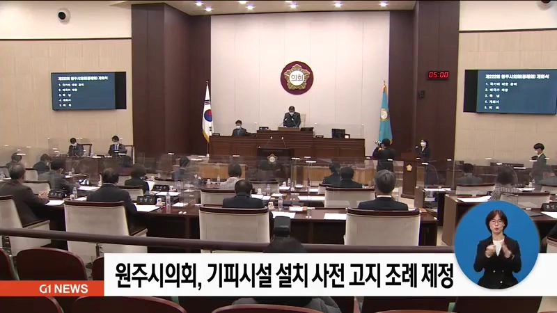원주시의회 곽희운 의원 등이 공동 발의한 원주시 갈등 유발 예방 시설 사전 고지 조례안이 어제(18일) 상임위를 통과해, 오는 23일 시의회 본회의를 통과하면 즉시 시행됩니다.