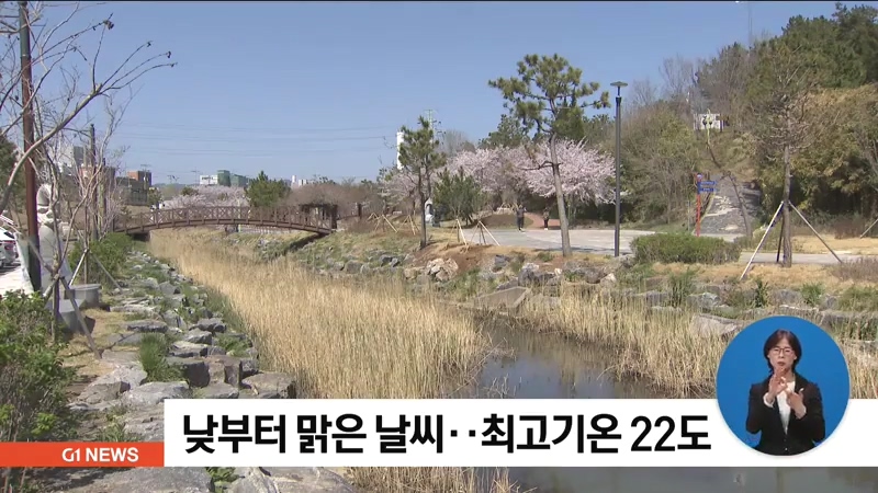낮 최고기온은 16도에서 22도의 분포로, 어제보다 조금 높겠습니다.