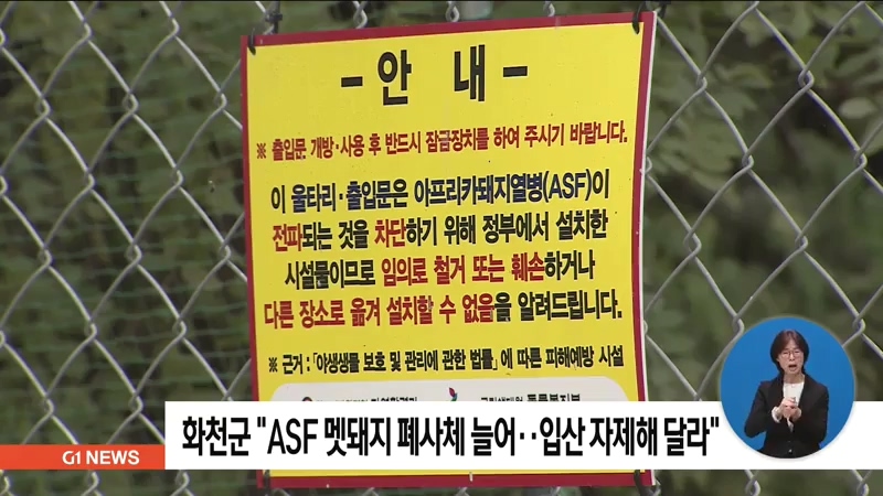 화천군이 아프리카돼지열병에 감염된 멧돼지 폐사체가 잇따라 발견되고 있다면서 상춘객의 입산 자제를 요청했습니다.