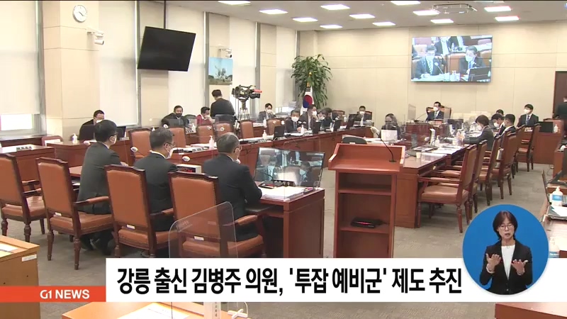 강릉출신 더불어민주당 김병주 의원은 평시에도 근무할 수 있는 예비군 병력을 확보하기 위해, 평시 복무 예비군 제도법안, 일명 '투잡 예비군법'을 대표발의했습니다.