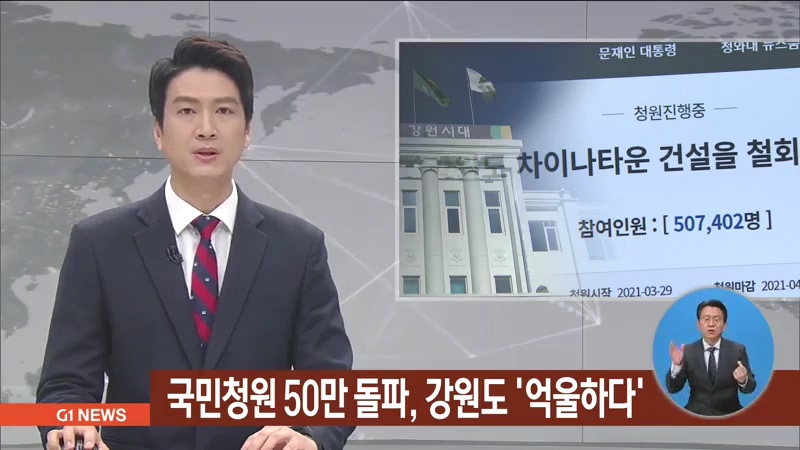 청와대 국민청원 게시판에는 "강원도 차이나타운 건설을 철회해주세요"라는 청원에 51만 명에 가까운 국민이 동참했습니다.