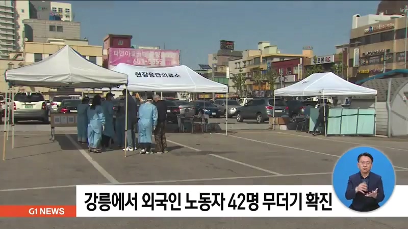 강릉시 보건당국에 따르면 어제 사천면 공사 현장에서 외국인 노동자 6명이 양성 판정을 받은 데 이어, 오늘 42명의 확진자가 추가로 쏟아졌습니다.