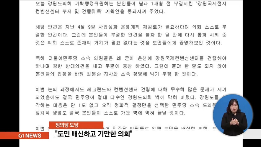 300회 도의회 역사상 가장 수치스런 날로 기록될 것이고, 최문순 도지사와 이를 방관한 민주당 도당에 그 책임이 있다고 지적했습니다.