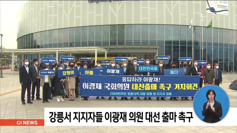 이광재 의원 지지하는 영동 지역 지방의원과 지지자 모임이 어제(20일) 강릉역 앞에서 기자회견을 열고, 이광재 의원의 대선출마를 촉구했습니다.