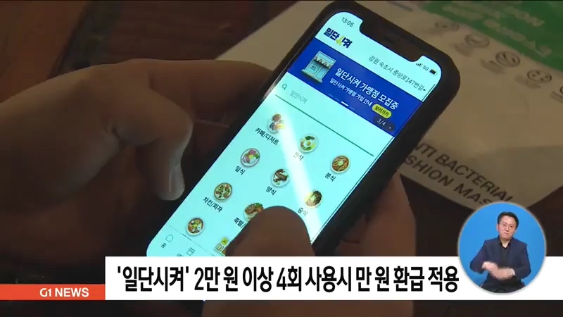 '일단시켜' 2만 원 이상 4회 사용시 만 원 환급 적용