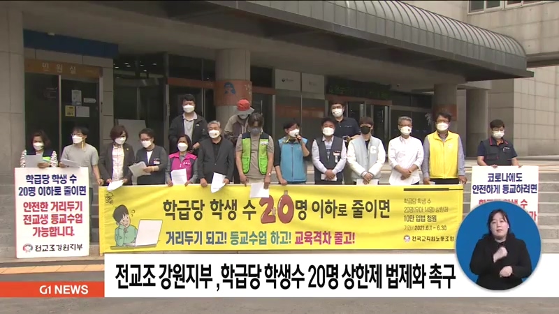 전교조 강원지부가 기자회견을 열고 학급 당 학생 수를 20명으로 제한하는 법 제정을 촉구했습니다.