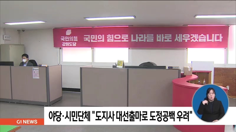 국민의힘 도당은 논평을 내고, 도지사와 보좌진 마저 줄줄이 사퇴하면 행정공백을 피할 수 없고, 강원도는 '선장없는 배'가 될 것이라고 지적했습니다.