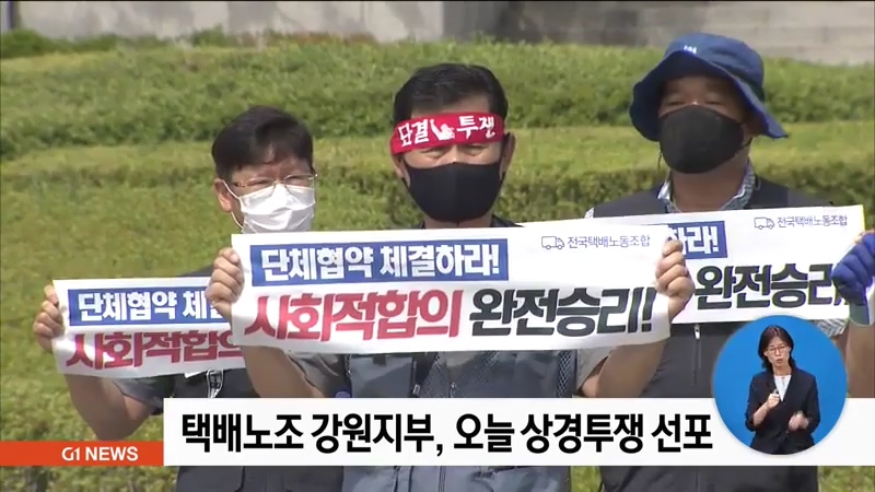 전국택배노동조합 강원지부가 어제(14일) 강릉시청 앞에서 기자회견을 열고 택배노동자 과로사 방지를 위해 상경 투쟁을 선포했습니다.