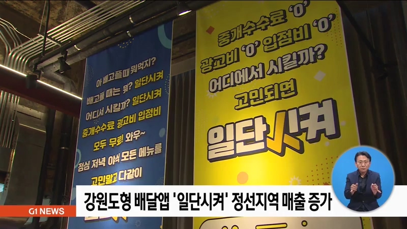 강원도형 배달앱 '일단시켜' 시범 서비스 지역으로 선정된 정선지역 소상공인들의 매출이 증가하고 있는 것으로 나타났습니다.