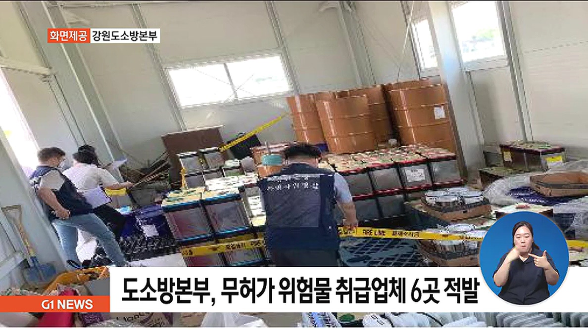 강원도소방본부가 도내 5개 시·군에서 소방서 허가 없이 위험물을 저장하고 취급한 업체 6곳을 적발했습니다.