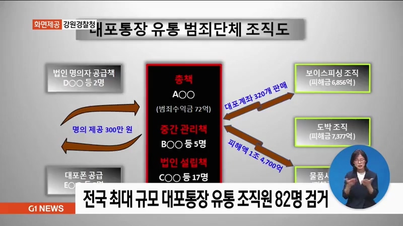 전국 최대 규모 대포통장 유통 조직원 82명 검거