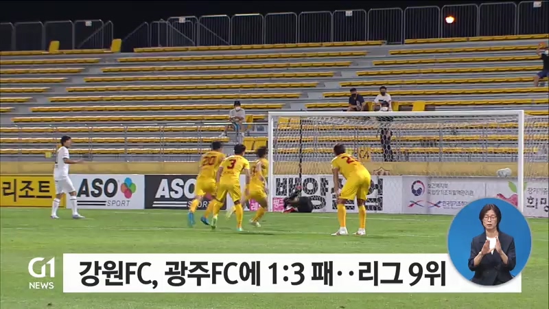 강원FC는 어제 오후 광주 축구전용경기장에서 열린 '하나원큐 K리그1 2021' 20라운드 원정 경기에서 광주에게 3골을 내주면서 1대 3으로 패했습니다.