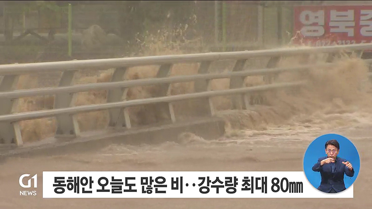제9호 태풍 '루핏'의 영향으로 동해안에 비 피해가 잇따르고 있는 가운데, 오늘도 영동권을 중심으로 밤까지 많은 비가 쏟아지겠습니다.