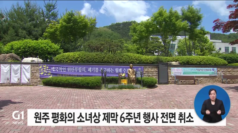 내일(14일) 예정됐던 원주 평화의 소녀상 제막 6주년 기념행사가 코로나19 예방을 위해 전면 취소됐습니다.