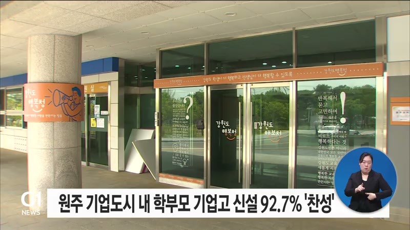 강원도교육청은 원주 기업도시 내 학부모 등을 대상으로 설문조사를 벌인결과, 10명 중 9명이 새로 학구를 만들고 기업고를 신설해 자녀가 진학하기를 원하는 것으로 조사됐다고 밝혔습니다.