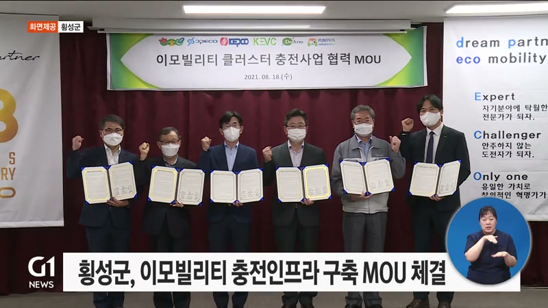 횡성군과 한국전력공사 횡성지사 그리고 전기차 관련 4개 업체가 어제(18일) 이모빌리티 충전인프라 구축 협력을 위한 업무협약을 체결했습니다.