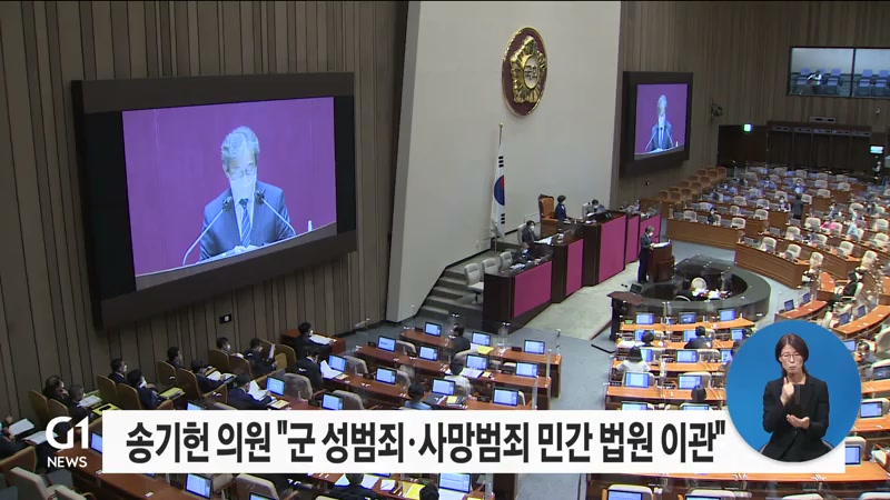 송 의원이 대표발의한 개정안은 현역군인이나 군무원이 저지른 성폭력 범죄, 군인이 사망한 사건의 원인이 되는 범죄의 경우, 군사법원이 아닌 민간 법원이 재판권을 갖도록 했습니다.
