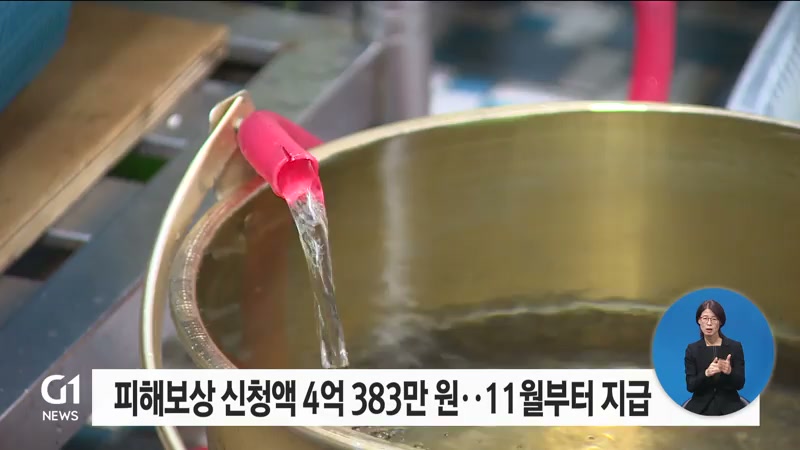 피해보상 신청액은 4억 383만 원으로 집계됐고, 항목별로는 수도꼭지 필터, 생수 구매, 영업 손실, 정수기 필터 순서였습니다.