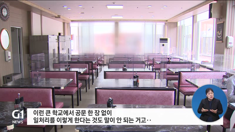 묵묵부답인 학교를 상대하며 식당 문 열지도 닫지도 못하는 괴로운 나날만 몇 달째 계속되고 있습니다.