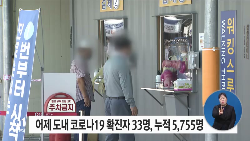 어제 도내 코로나19 확진자 33명, 누적 5755명