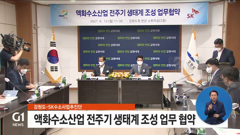 강원도와 SK수소사업추진단이 '액화수소산업 전주기 생태계 조성'을 위한 업무 협약을 맺었습니다.