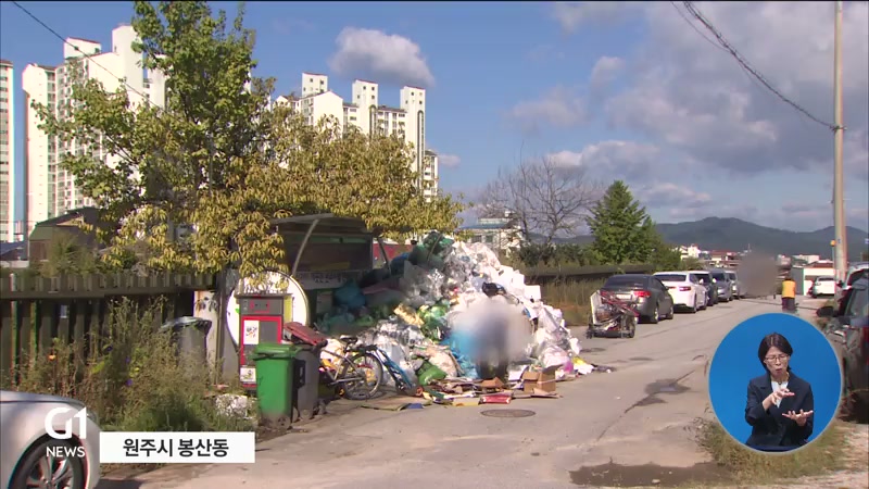 닷새 연휴 지났다고 골목 한구석에 거대한 쓰레기 산이 생겼습니다.