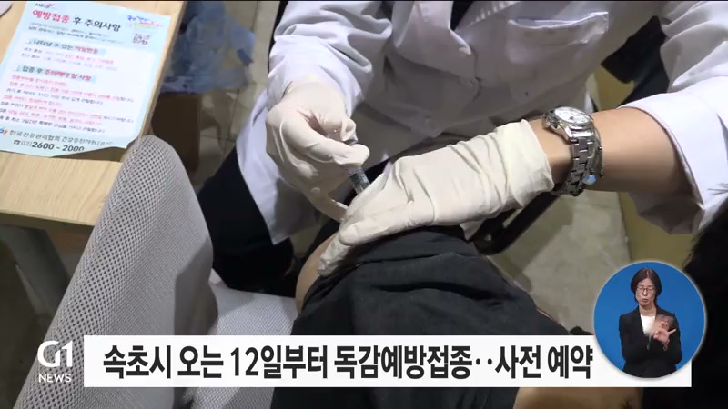 속초시는 겨울철 호흡기 감염병 유행에 대비해오는 12일부터 독감 예방접종을 한다고 밝혔습니다.