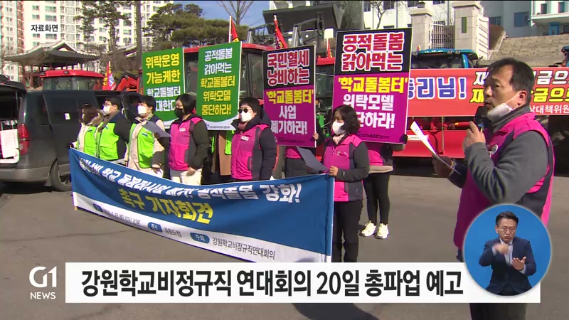급식 조리사와 돌봄 전담사 등으로 구성된 강원학교비정규직 연대회의가 복리후생 등에서의 차별 해소를 요구하며 오는 20일 총파업을 예고했습니다.