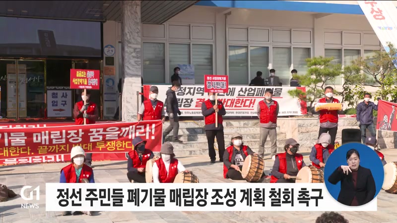 G1 뉴스에서 보도한 정선 산업 폐기물 매립장 조성 사업과 관련해 정선지역 주민들이 어제(27일) 정선군청에서 대규모 항의 집회를 열고, 무조건적인 사업 철회를 요구했습니다.