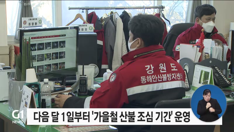 강원도는 다음 달 1일부터 12월 15일까지를 가을철 산불 조심 기간으로 정하고, 초동 진화 인력 33,672명과 감시 카메라 243대, 헬기 30대를 비상 대기할 계획입니다.