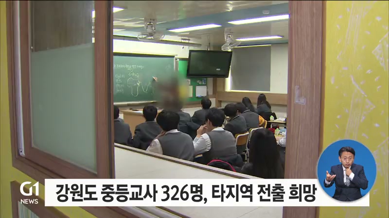 강원도교육청에 따르면, 내년 3월에 맞춰 타 시·도 전출을 원하는 교사를 조사한 결과, 중등교사 326명이 신청서를 냈습니다.