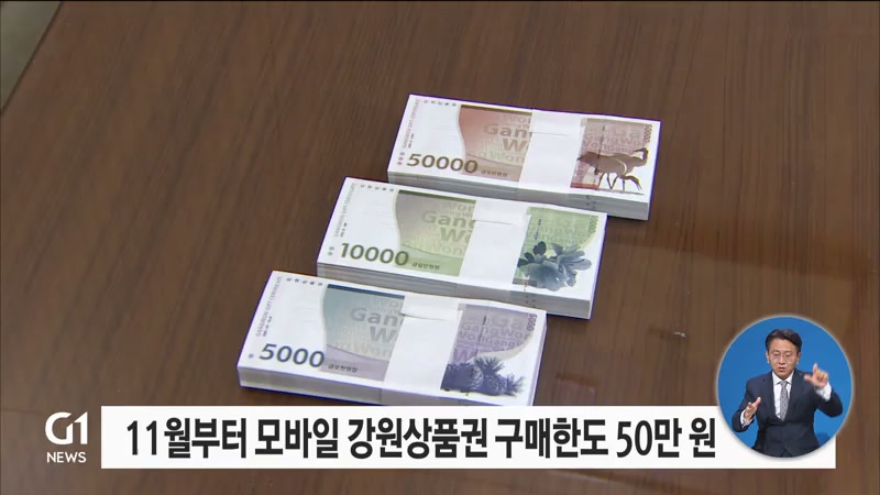 강원도가 지역사회 소비 진작을 위해 11월부터 두 달간 모바일 강원상품권의 1인 구매한도를 상향 조정합니다.
