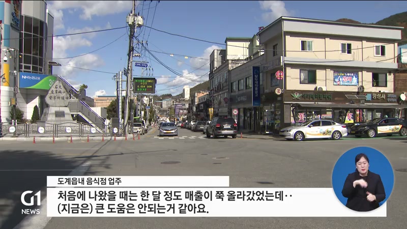 장학금이자 소비를 통한 지역 경기 활성화 대책인데, 주변 상인 반응은 좋지 않습니다.