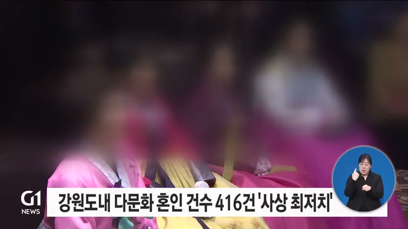코로나19 사태가 발생한 지난해, 강원도내 다문화 혼인 건수가 사상 최저치를 기록한 것으로 나타났습니다.