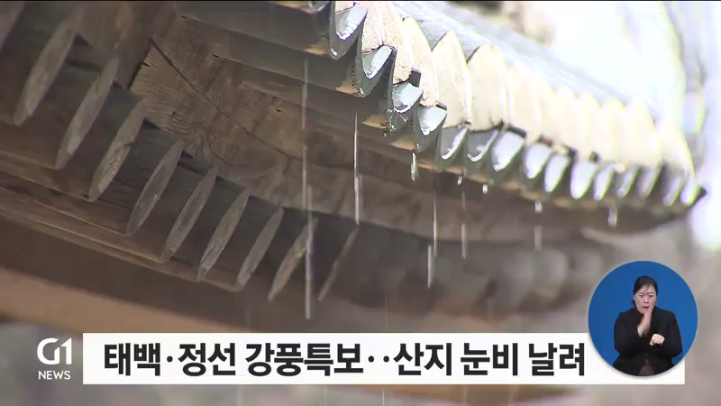 오늘 태백과 정선, 산간지역에 강풍주의보가 발효된 가운데, 내륙과 산지에서 빗방울이나 눈이 날리겠습니다.